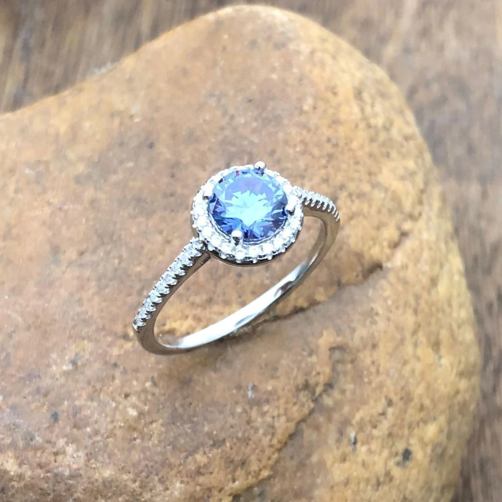 Um anel clássico e atemporal, com o brilho inconfundível das Zircônias edo Cristal Tanzanita