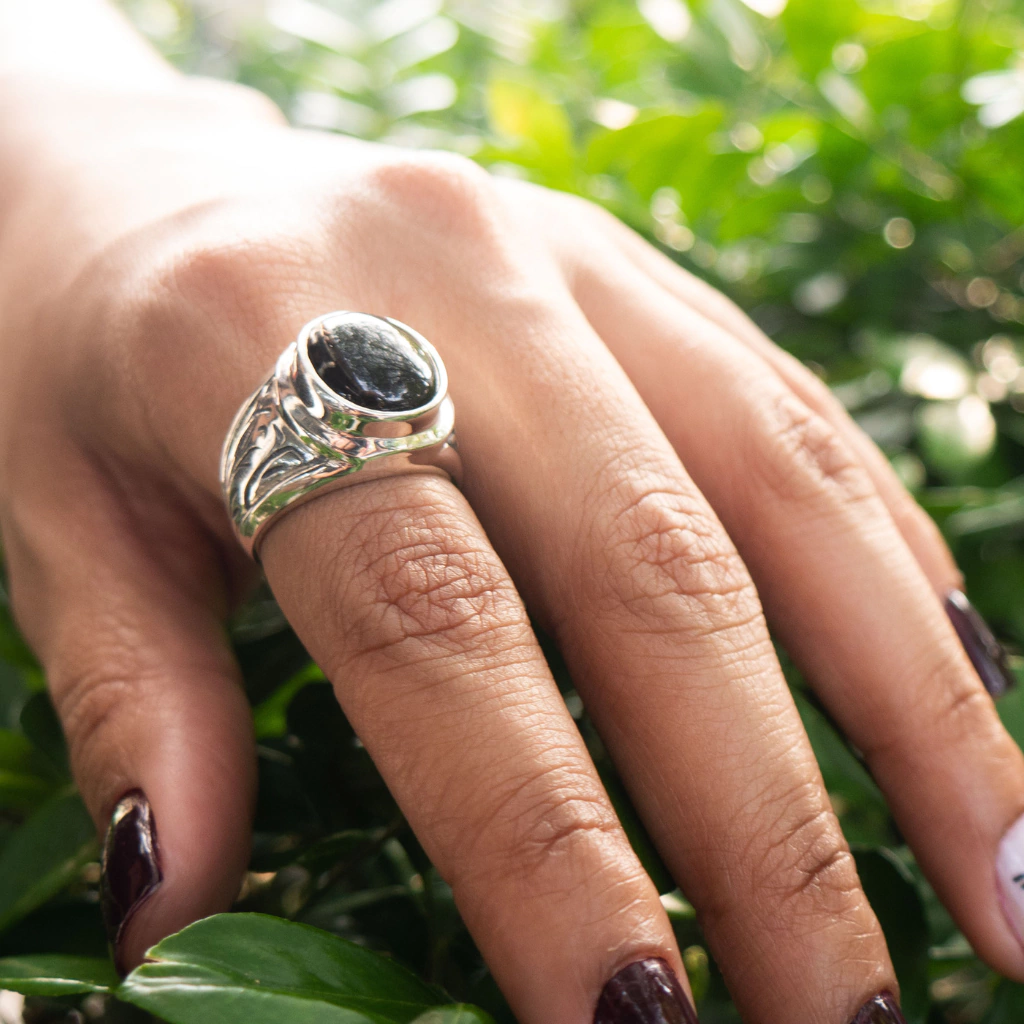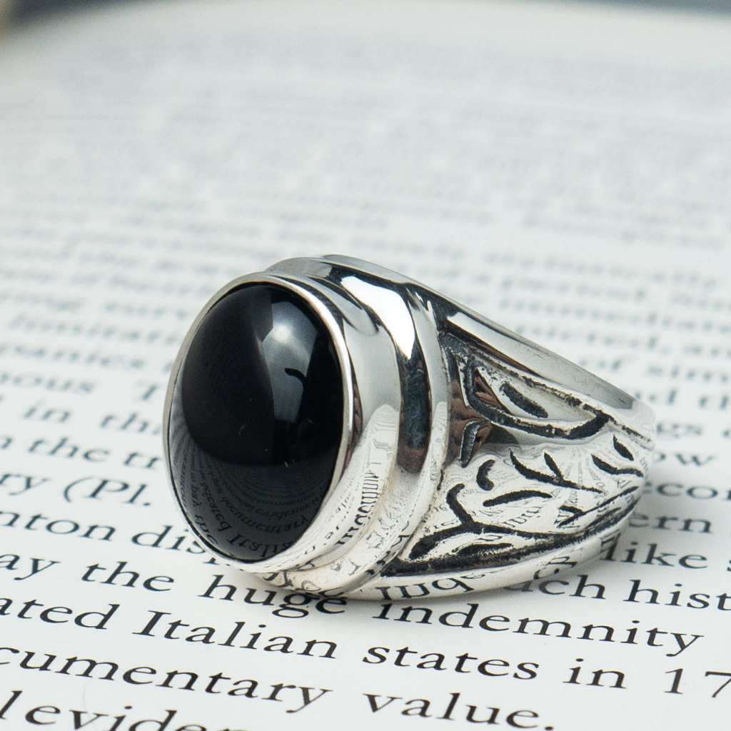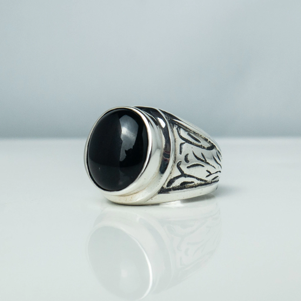 Anel Pedra Ônix Oval Inglesa, em Prata 925 (de Lei), fabricação Própria.