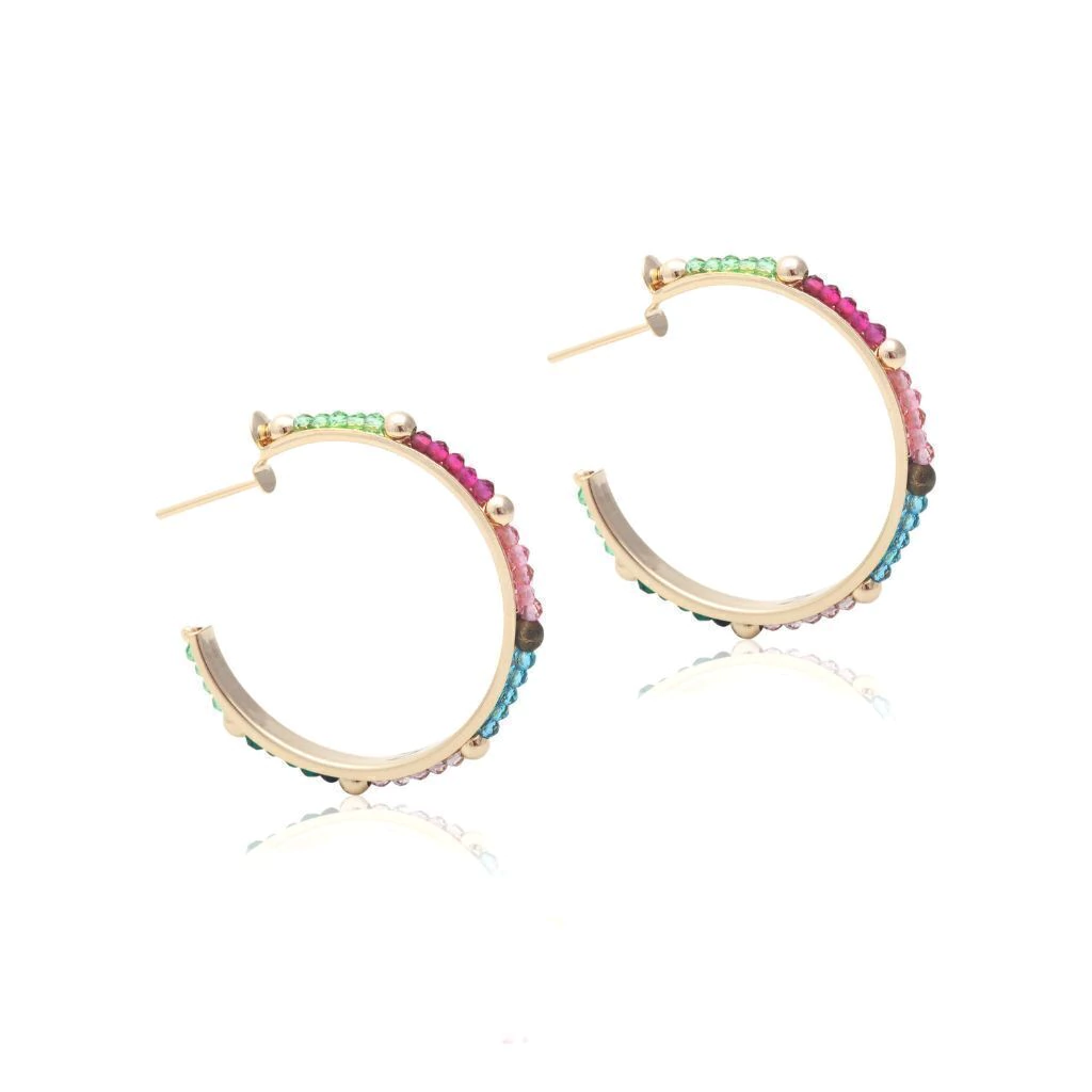 Brinco Meia Argola Cristal Topázio Azul