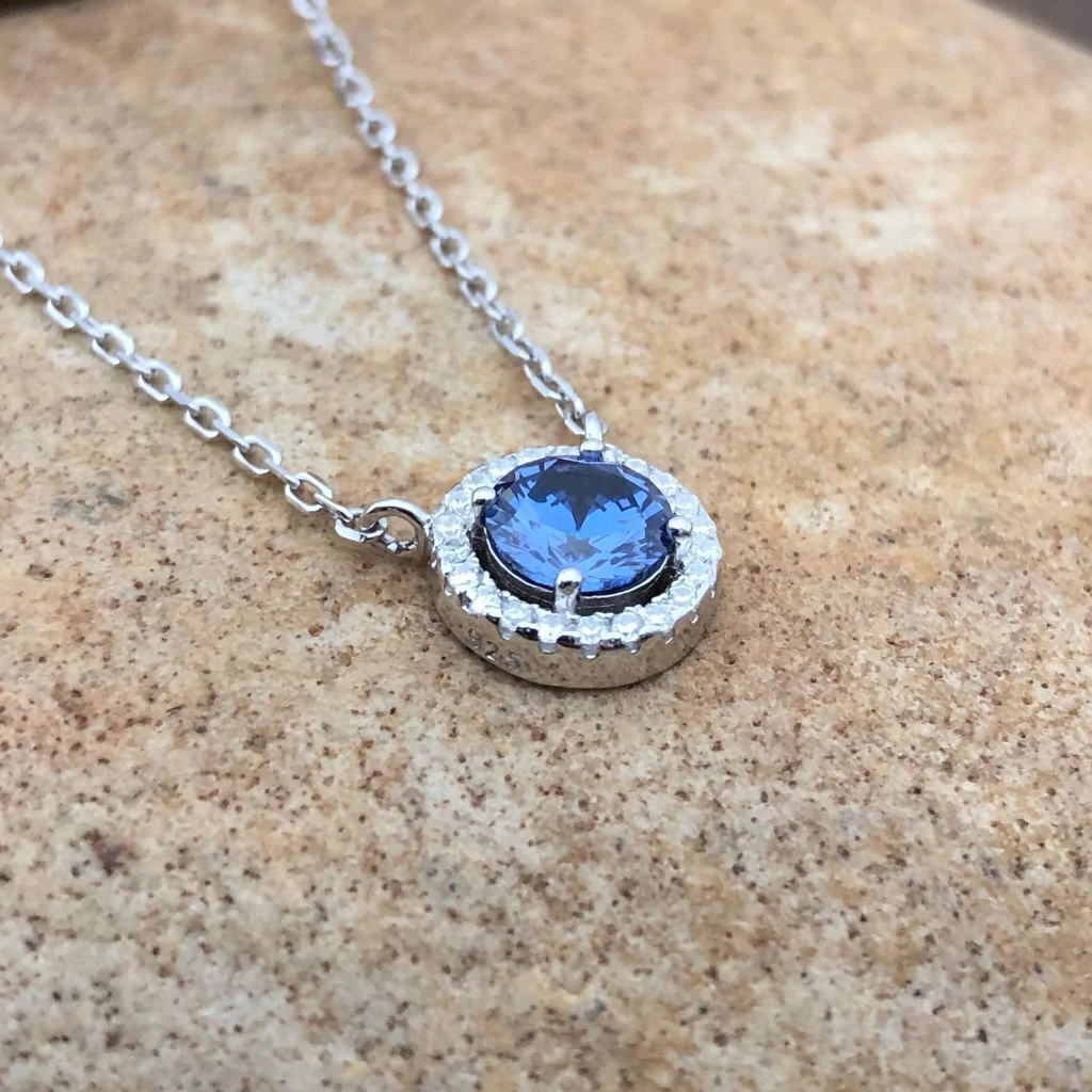 Gargantilha Cristal Tanzanita Azul Cravejado Zircônia Branca Prata 925