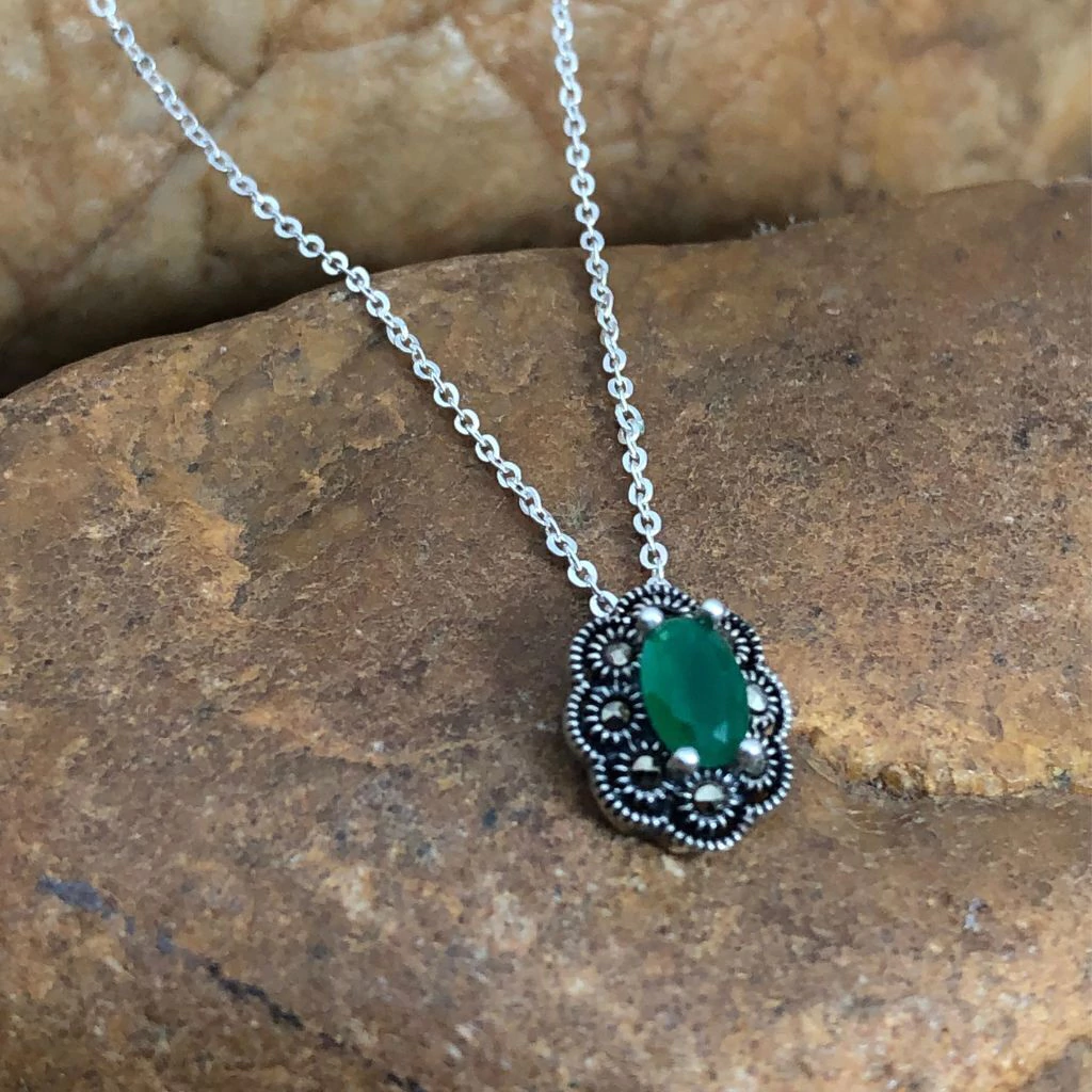 Gargantilha Marcassita Pedra Oval Natural Prata